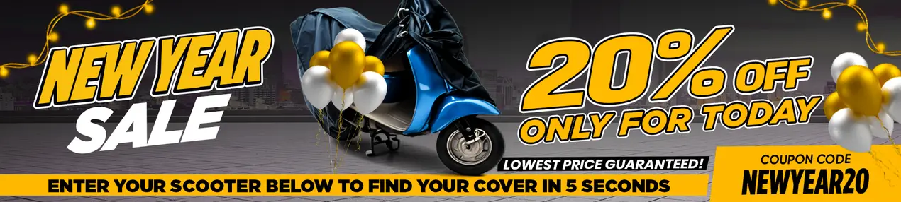 If you are looking for durable, reliable scooter covers, you’ve come to the right place. Our products help you keep your scooter in good condition by shielding against external threats. Our outdoor covers are made from multilayer polypropylene and offer a barrier against rain, sunlight, snow, ice, and wind. Our indoor covers, made from satin or polypropylene, protect against dust, humidity, and accidental damage. All covers are breathable by design and gentle on paintwork so they won’t cause scratches. And all are made to order, tailored to the make, model, and year of your scooter for a guaranteed fit. We sell our products for affordable prices and offer peace of mind with generous manufacturer warranties and robust securing features built into every scooter cover.
